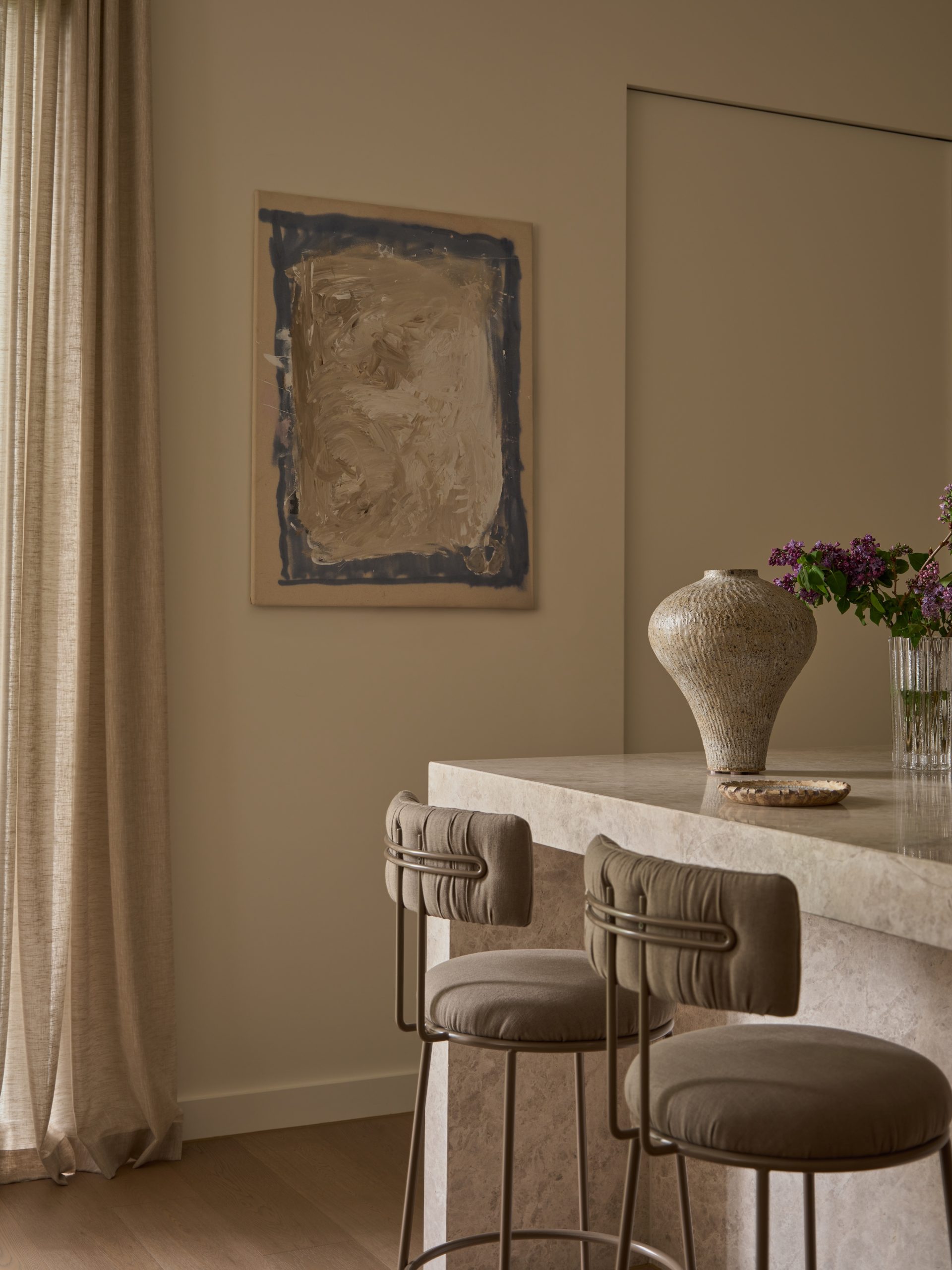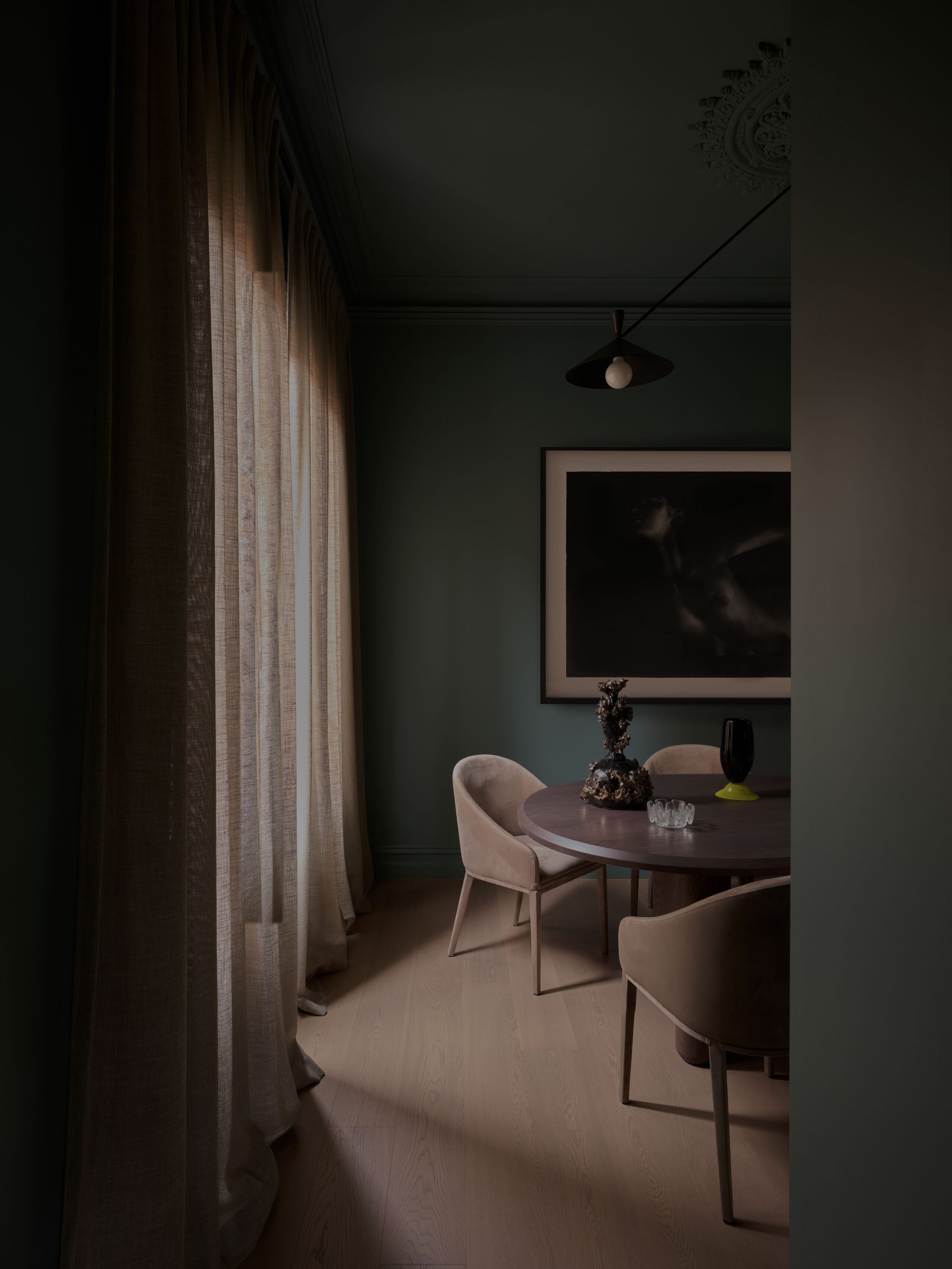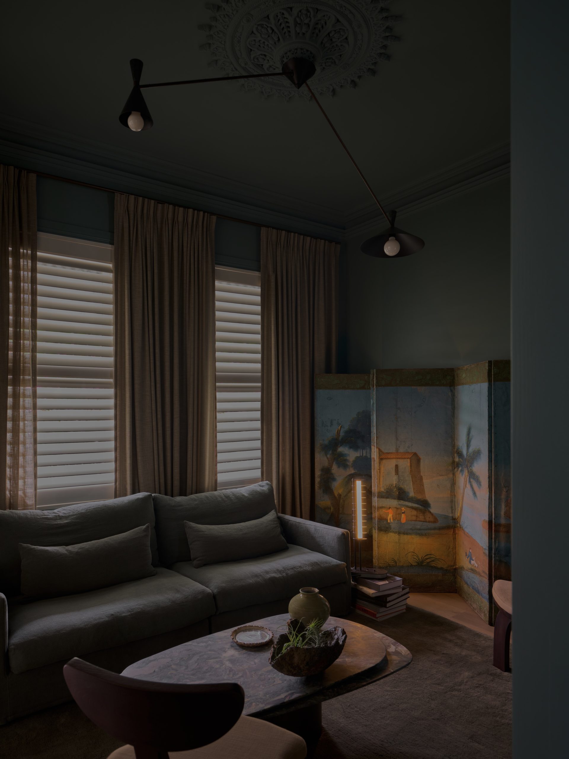 Conceived as a dialogue between heritage and modern restraint, Malvern II exemplifies our studio’s refined, layered approach — one rooted in atmosphere, intimacy, and intuitive balance. The homeowners approached KB-ID with a meticulously crafted architectural shell, seeking to infuse it with warmth, character, and a distinct sense of lived-in sophistication. What followed was a process defined by trust and shared vision. Our approach explored the balance of light and shade, We wanted to celebrate contrast — to create moments that feel cocooned and dramatic, yet anchored in calm.