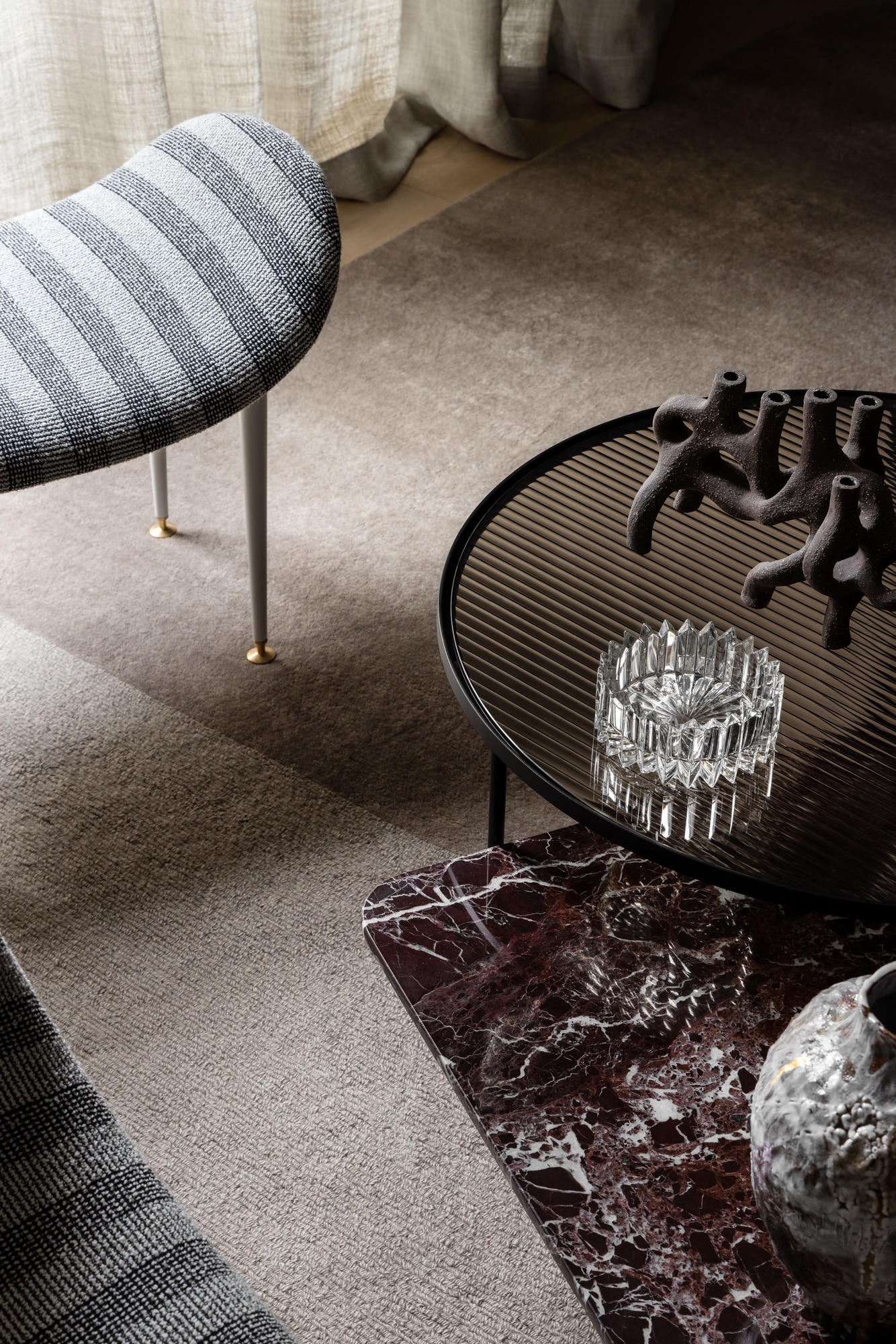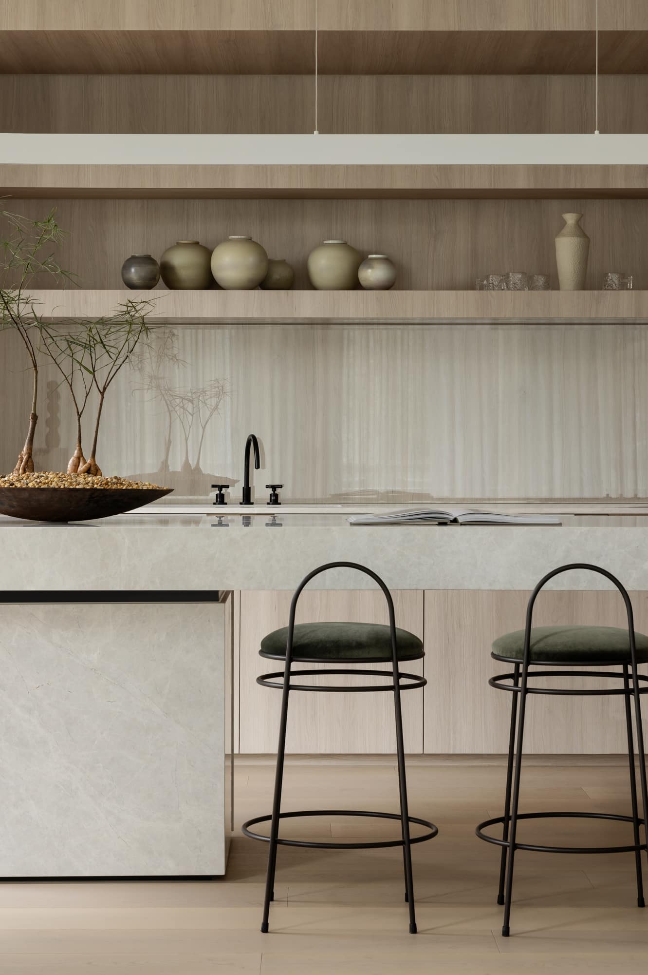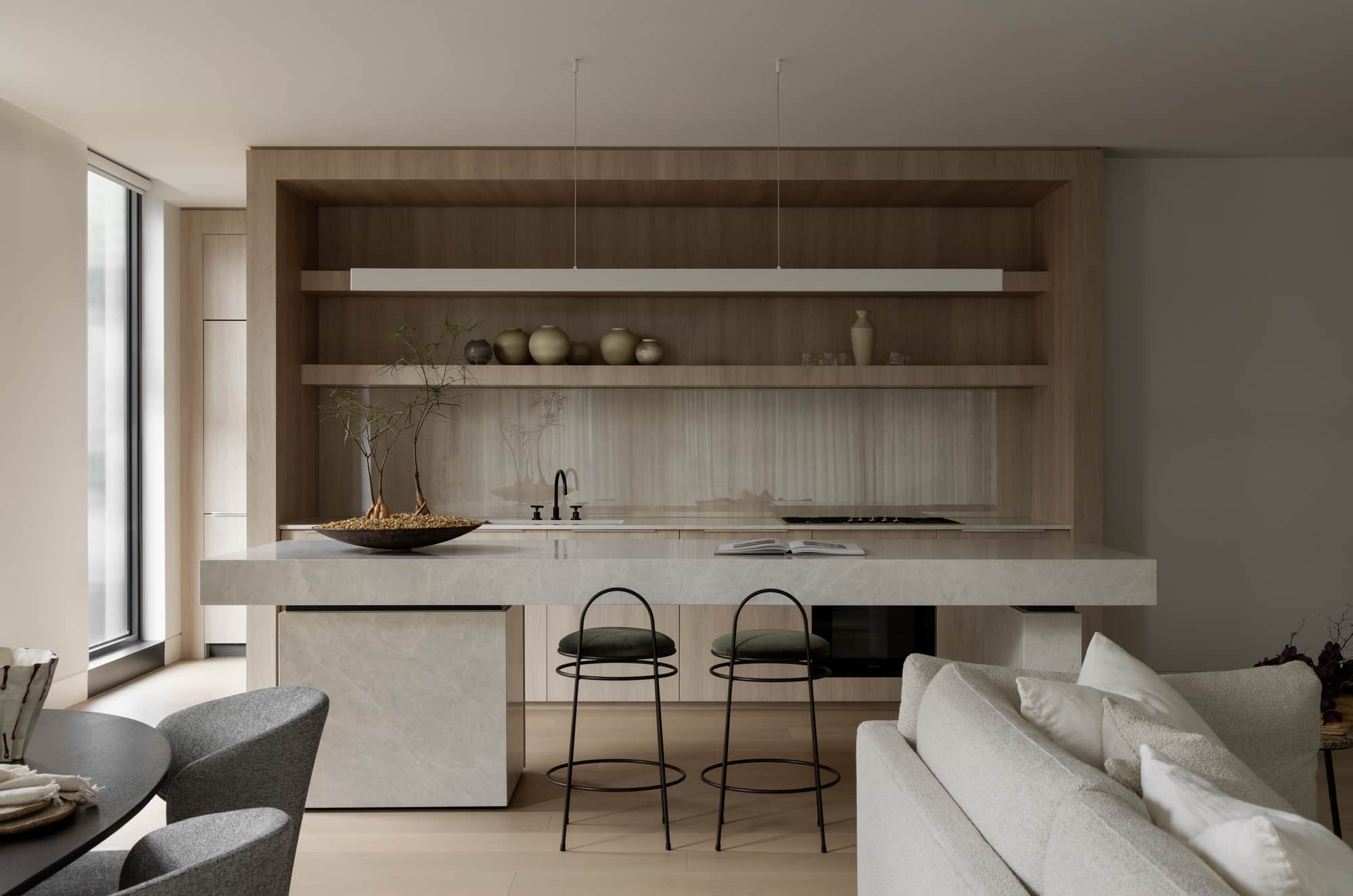 The home owners approached us with a brief that outlined a tranquil residence that celebrated its location. In light of South Yarra being the client’s third home, they wanted their new Melbourne dwelling to have a distinct city feel. The interior decoration embraces the vibrant and cosmopolitan energy of Melbourne, imbued with a boutique hotel quality ideal for entertaining friends and family. Our studio responded to the client’s familiarities and preferences in a nuanced way. Drawn to a relaxed coastal interior, we found a way to leverage the familiar coastal aesthetic through a refined and opulent approach. As such, the styling direction was a mix of a broadly Japanese interior style with Scandinavian touches, delivering an interior that is very much a reflection of the studio signature style.
